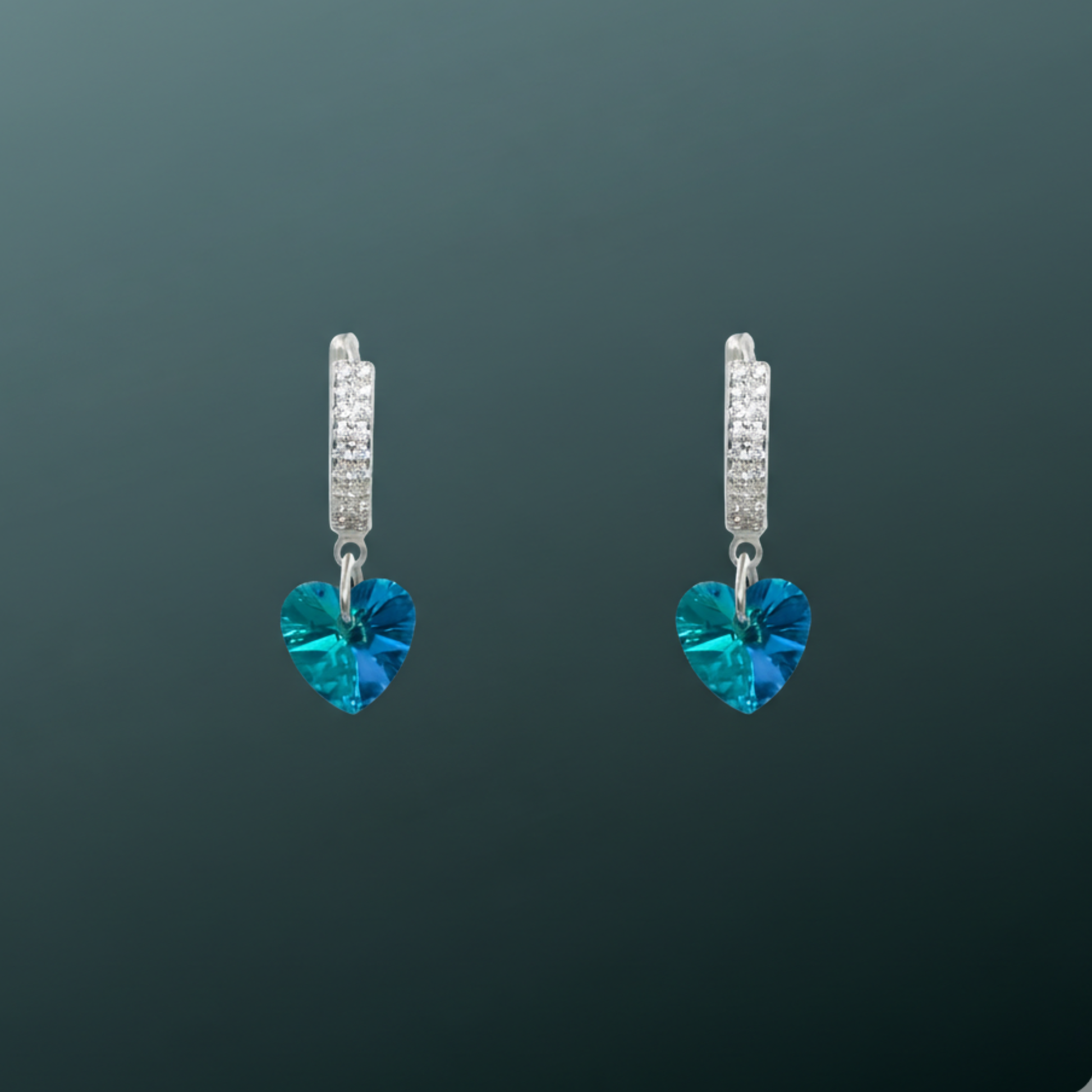 Elegant 925 silver earring with a heart-cut blue crystal drop and CZ accents. Adds a touch of sparkle and modern romance to any look or occasion.