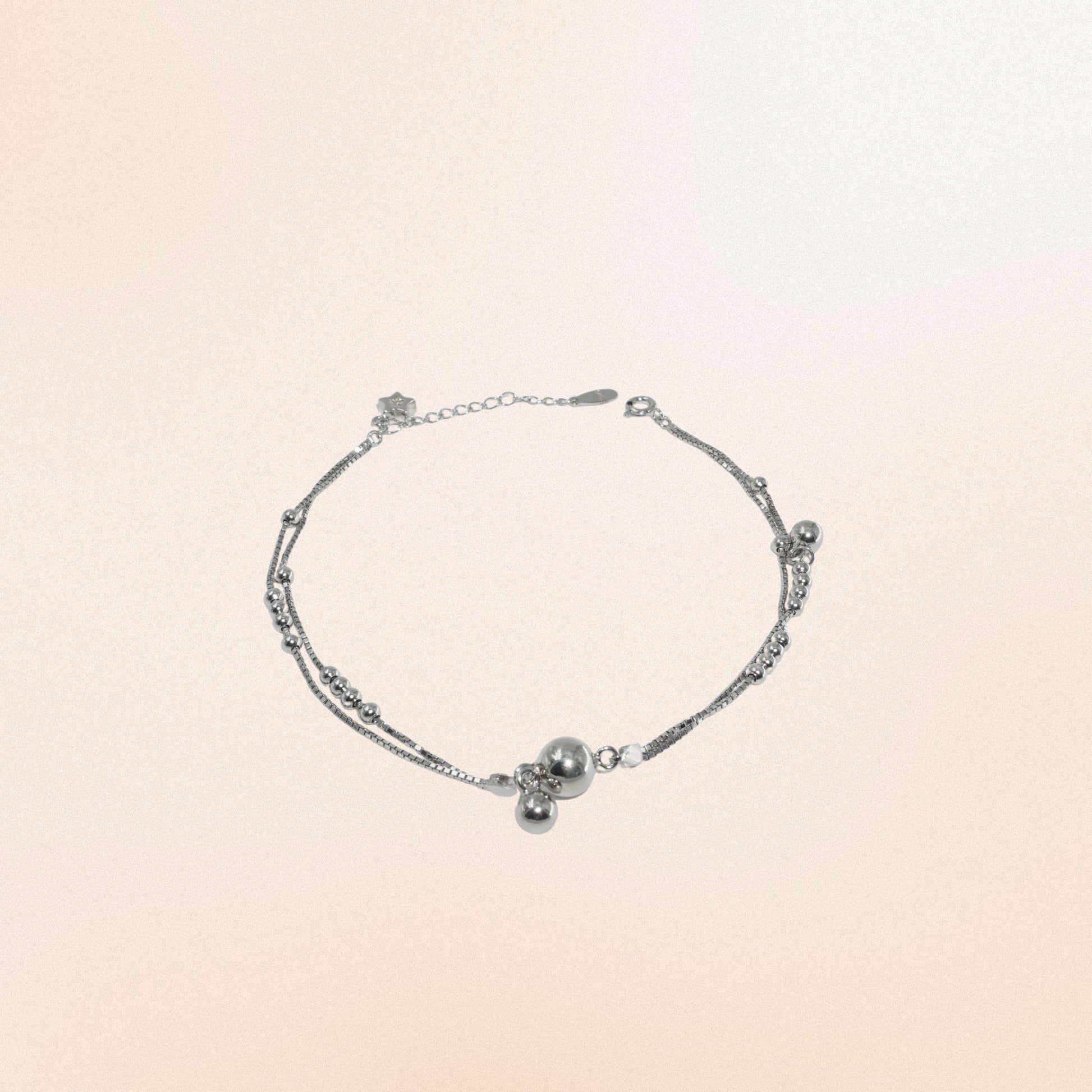 Hallmarked 925 silver anklet for women with double chains, bead stations and twin ball charms. Adjustable extender for a secure fit—ideal for daily wear.