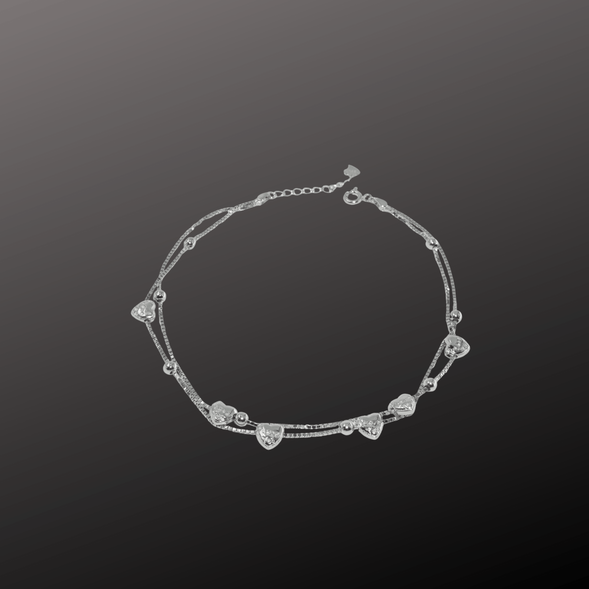 Elegant 925 sterling silver anklet with twin chains, heart charms and polished beads. Adjustable extender and lobster clasp—ideal gift for women.
