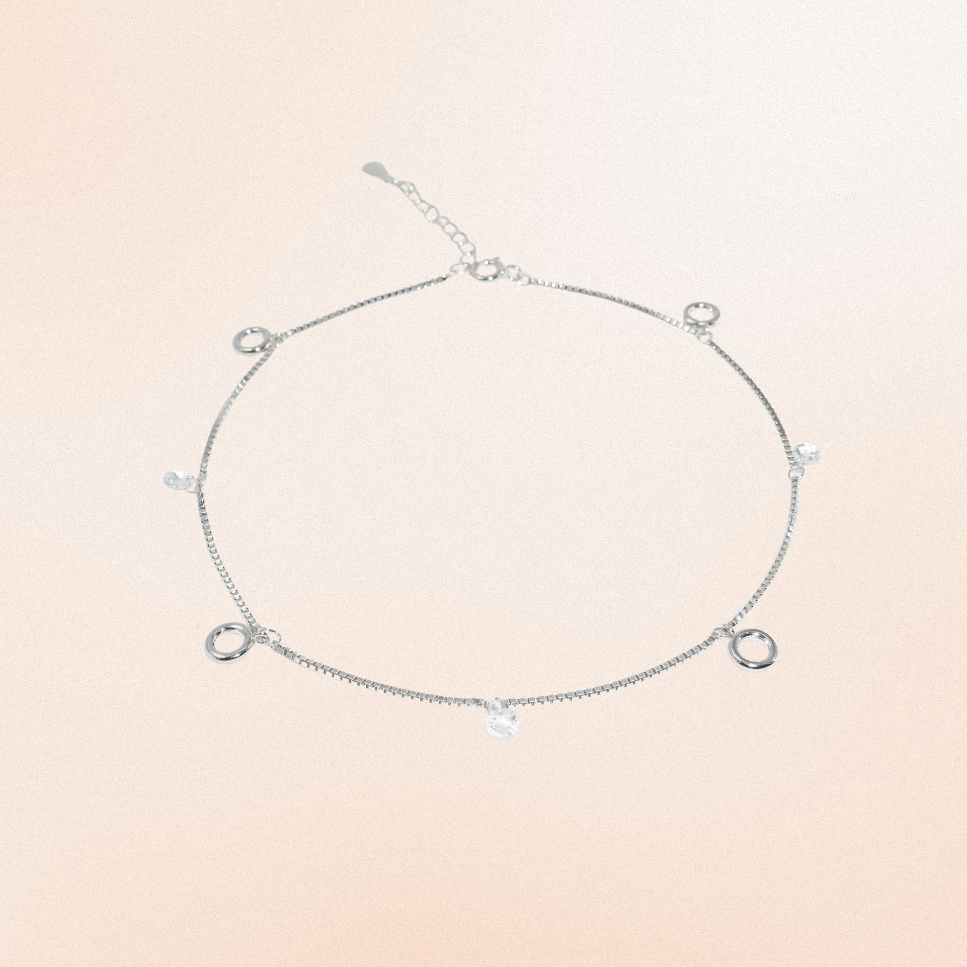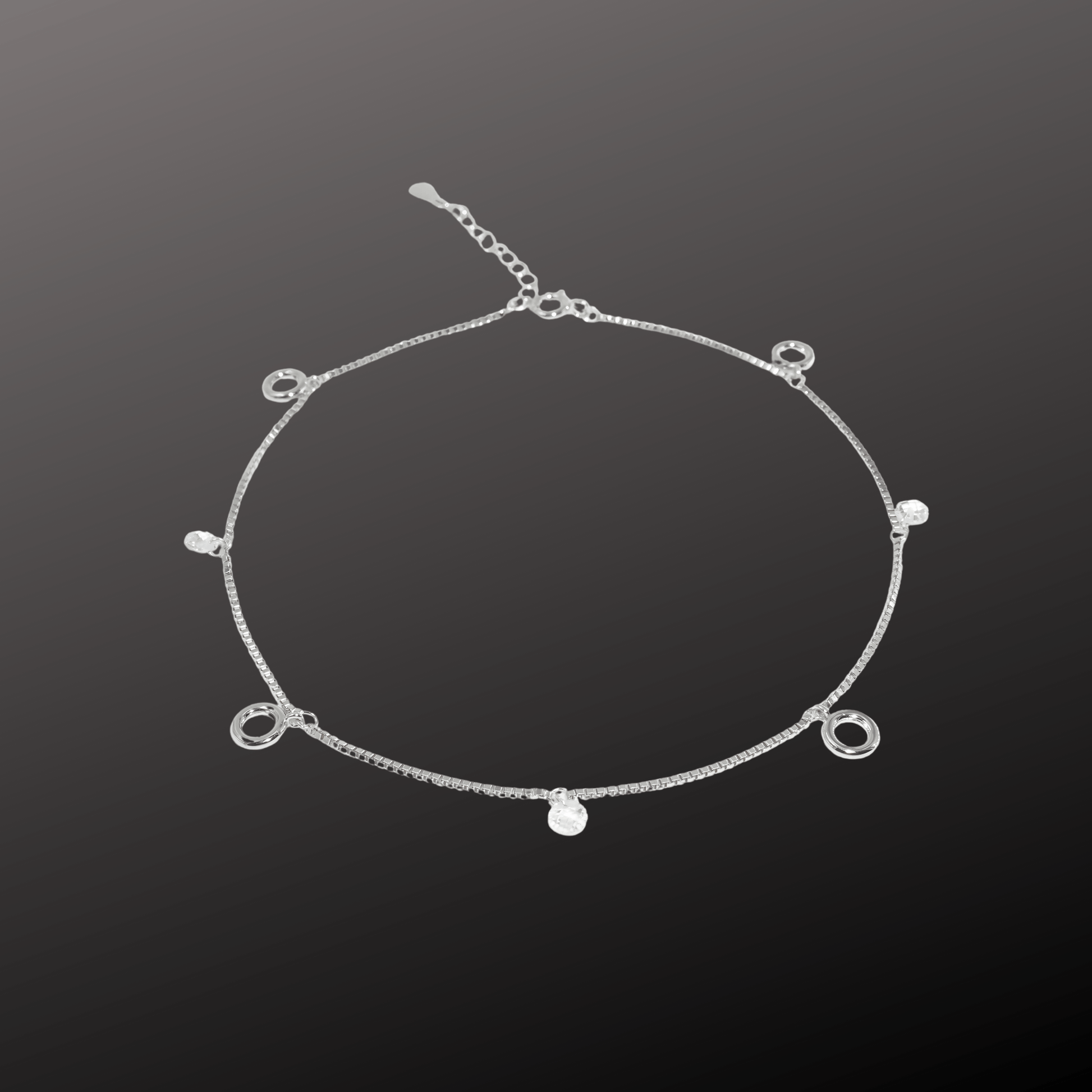 Minimalist 925 silver anklet with delicate circle and crystal charms. A chic accessory for everyday elegance and perfect layering with other jewelry.