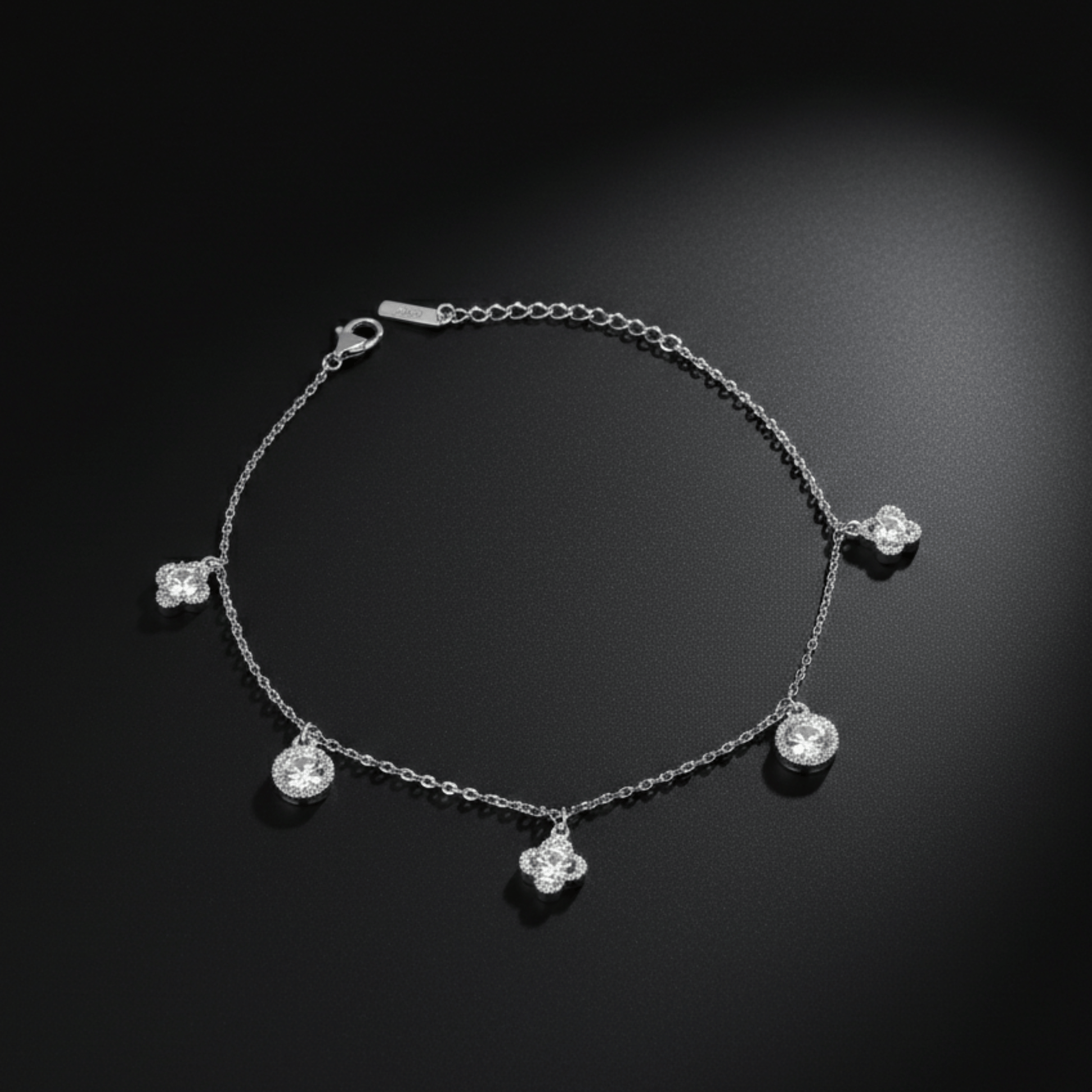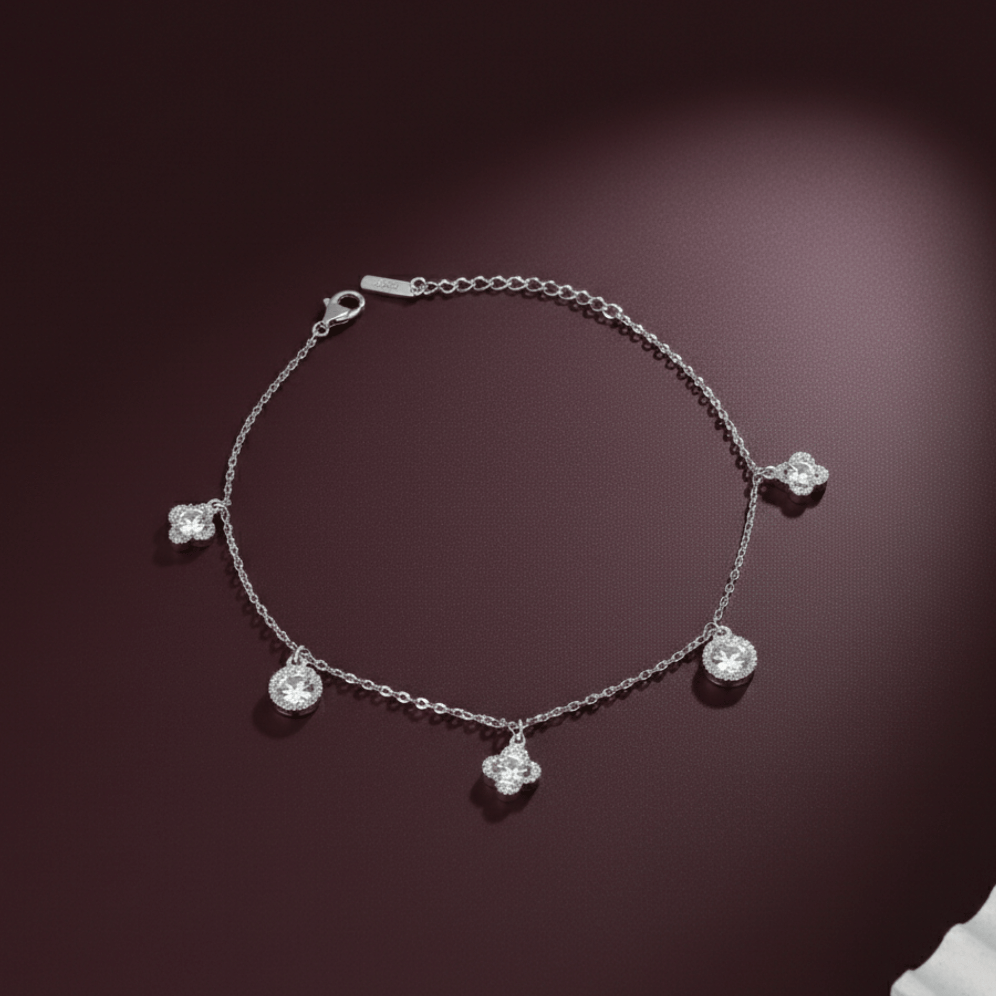 Stylish 925 silver anklet adorned with floral and round crystal charms. A perfect blend of elegance and sparkle, ideal for both daily wear and special occasions.