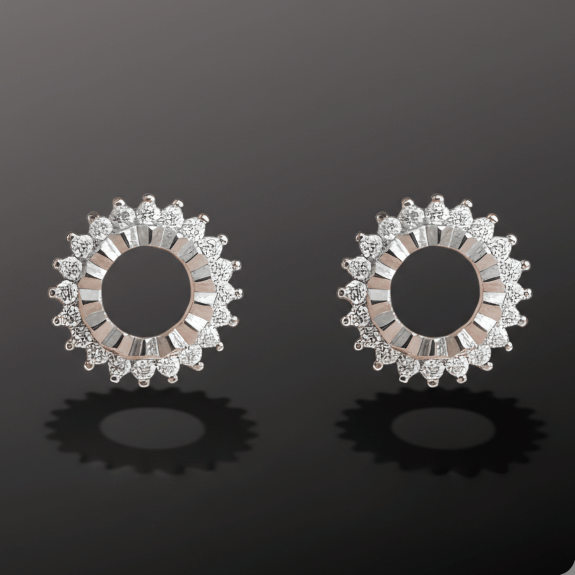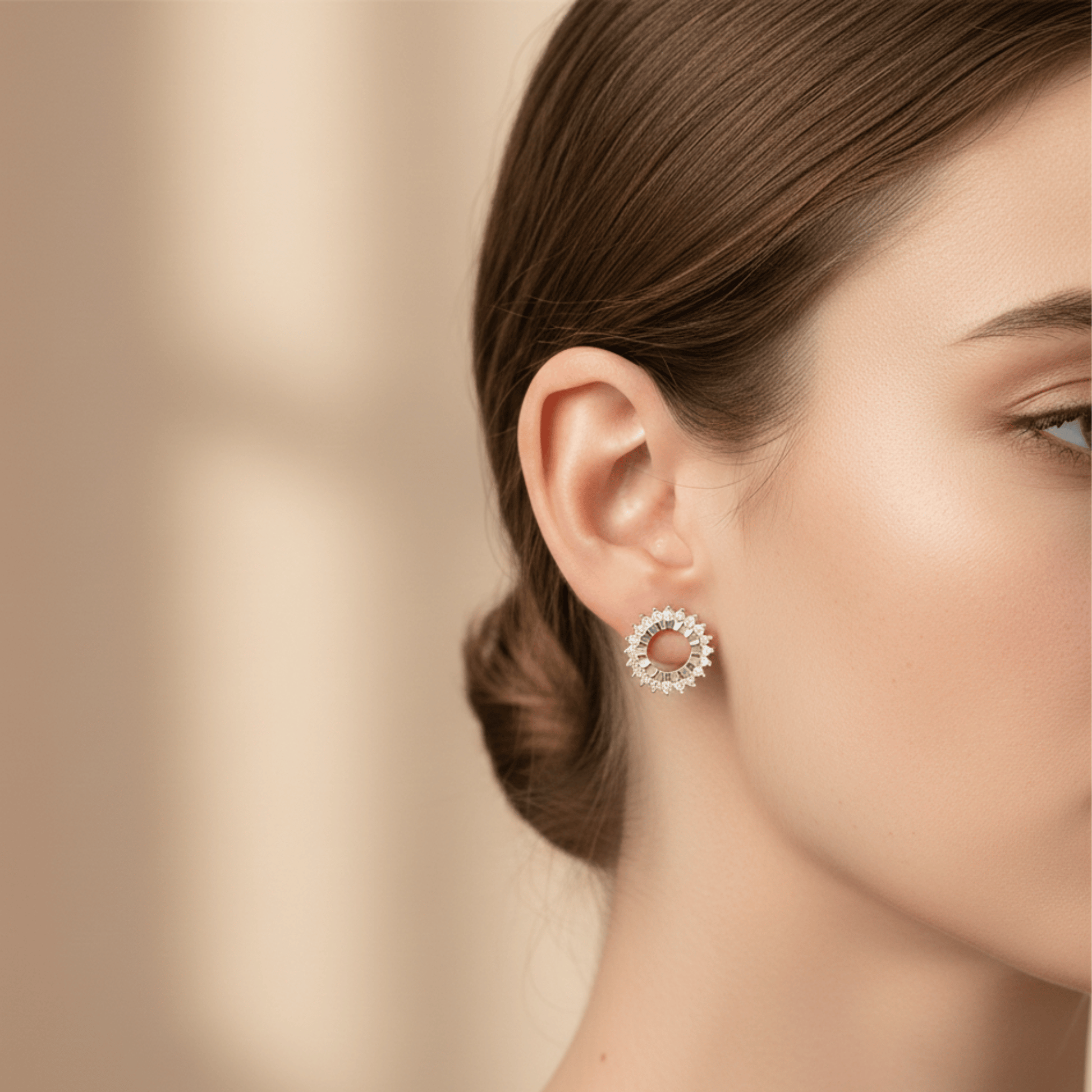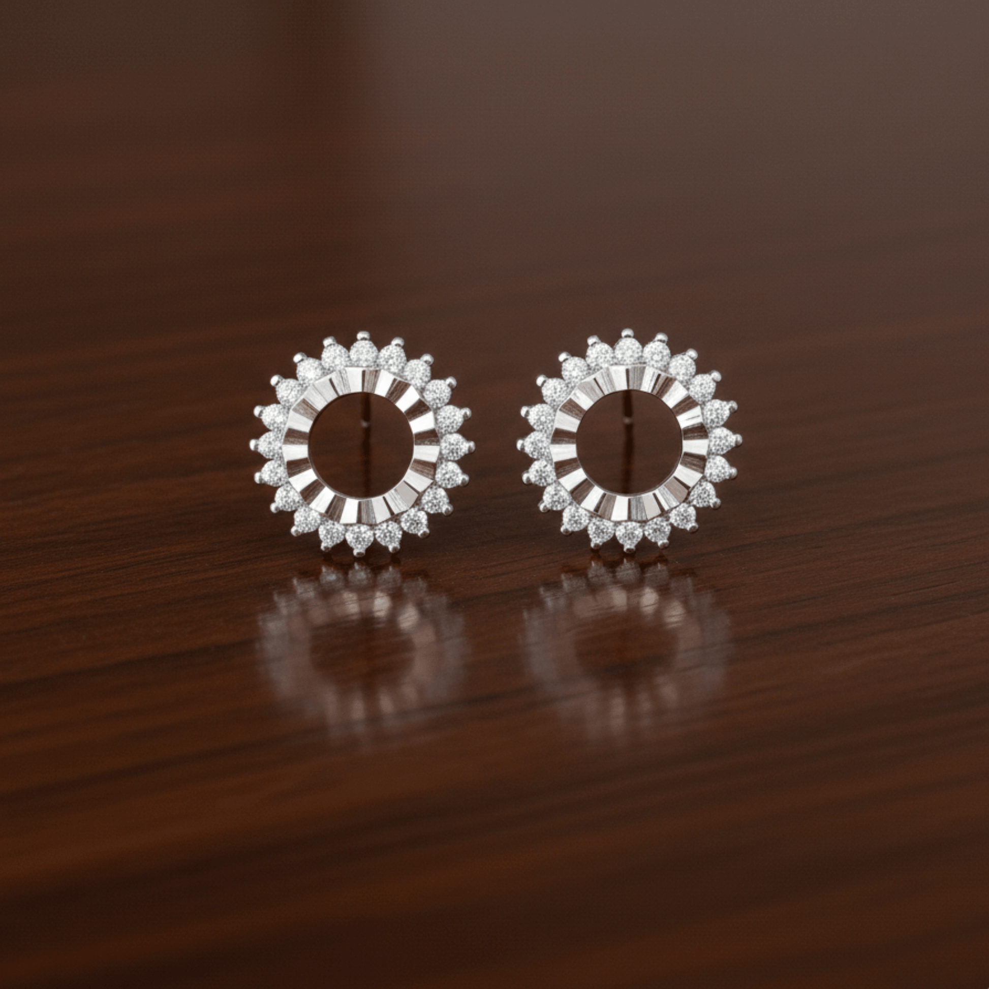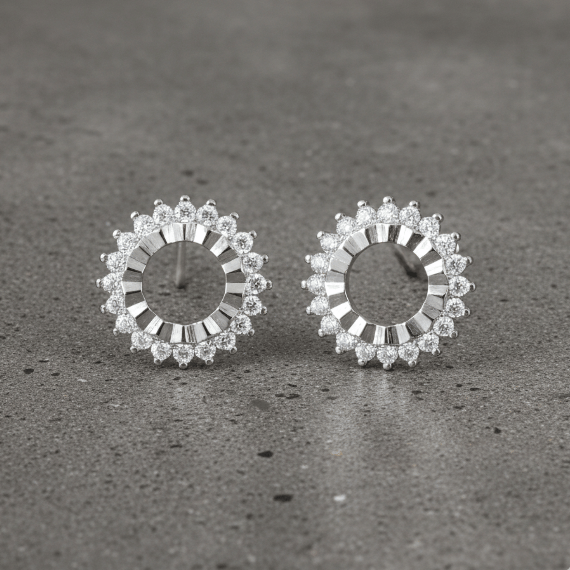 Round halo silver earrings for women made in 925 sterling silver. Diamond stud earrings with brilliant sparkle, trendy silver studs for women.