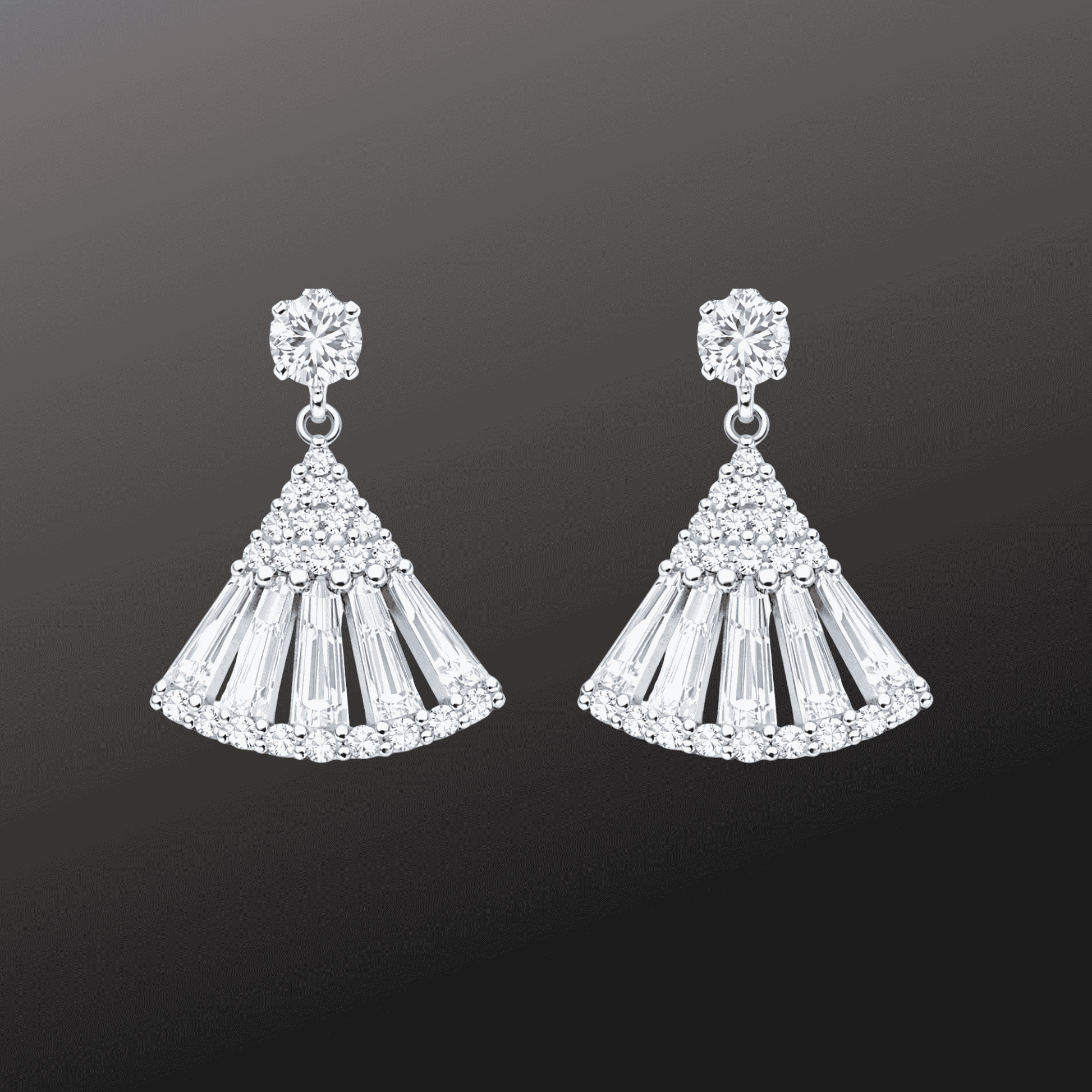 Buy silver diamond dangle earrings for women. 925 sterling silver CZ earrings, party wear earrings, bridal earrings, luxury drop earrings online.