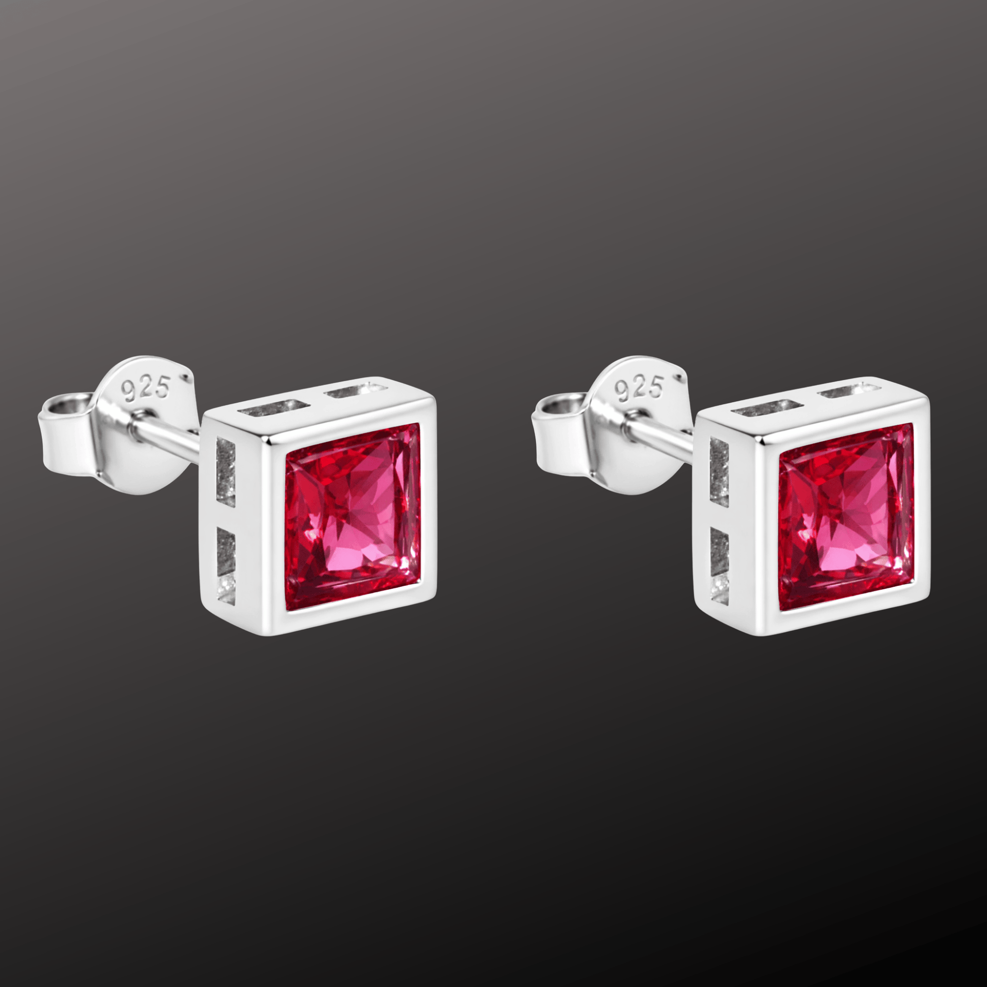Trendy square pink crystal stud earrings crafted in 925 sterling silver. Minimal, chic, comfortable earrings for women, girls, office & casual wear.